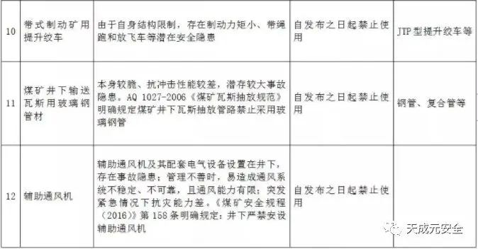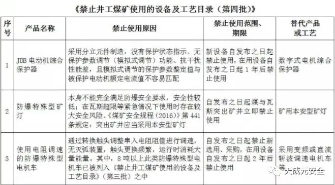 附件:禁止井工煤矿使用的设备及工艺目录(第四批)